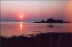 L'autre activité historique du Passage, qui elle aussi n'aura pas survécu à la guerre, est la récolte du sel dans les marais salants longeant la digue qui relie l'ile du Passage au village de Saint-Armel. Sous l'influence du soleil et du vent l'eau de mer canalisée vers les oeillets s'évaporait laissant les cristaux de sel regroupés en tas puis récoltés. |