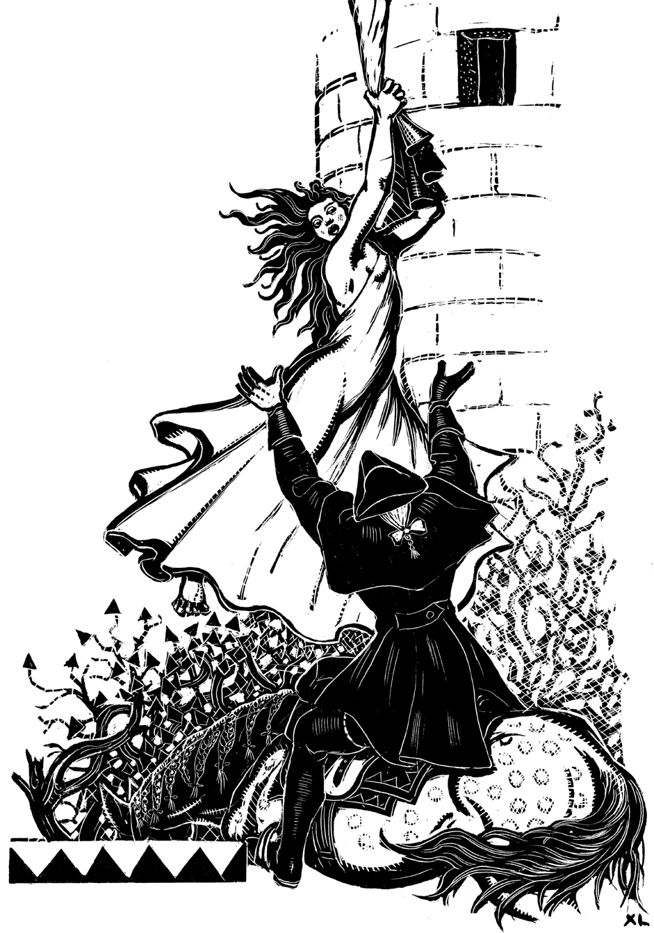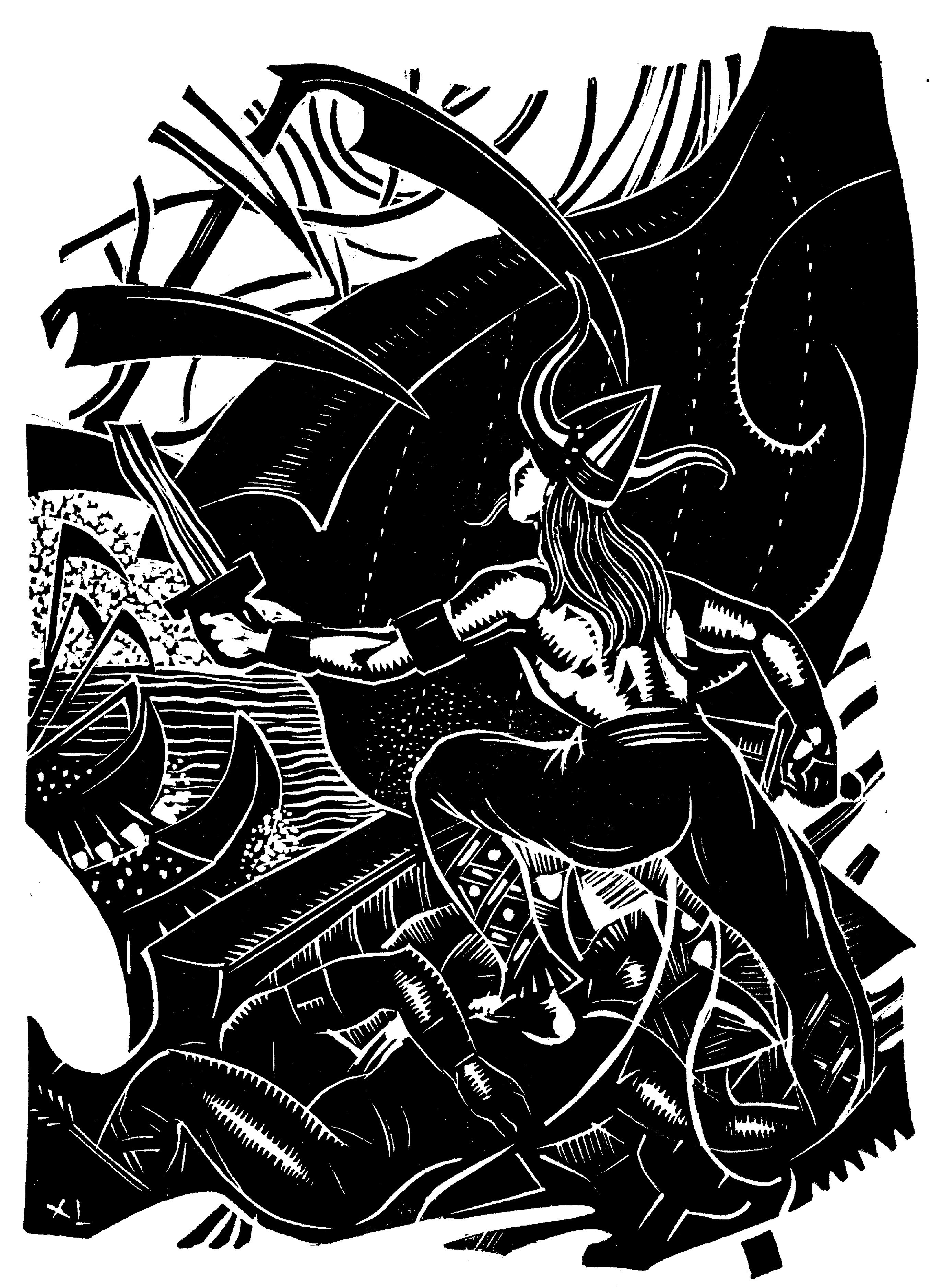 Jean-Pierre CALOC'HOriginal à l'Écomusée de Groix (56) Gravure sur bois de fil - (1933) Dihunamb (Réveillons-nous) "Pont-l'abbé" - Musée de Bretagne (35) Original au Musée de Bretagne